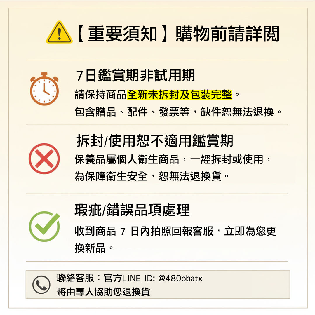 *若您有任何退換貨需求或有任何疑慮,歡迎聯絡官方LINE客服